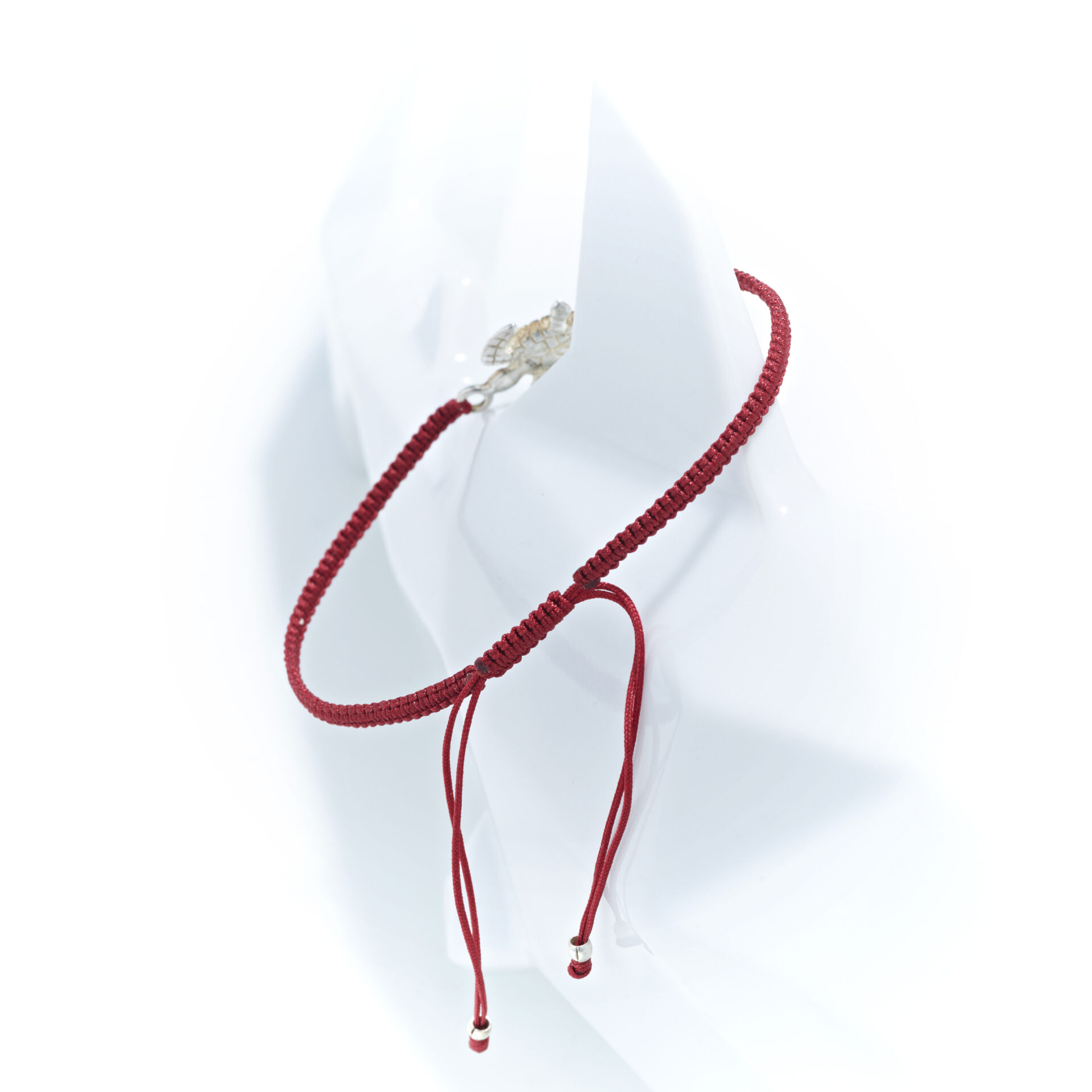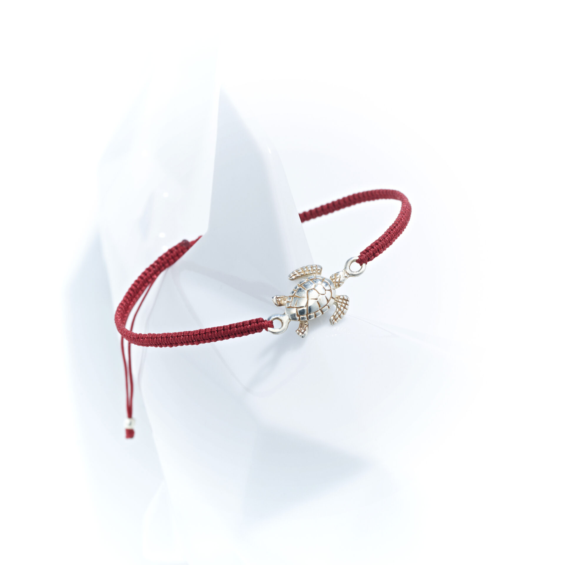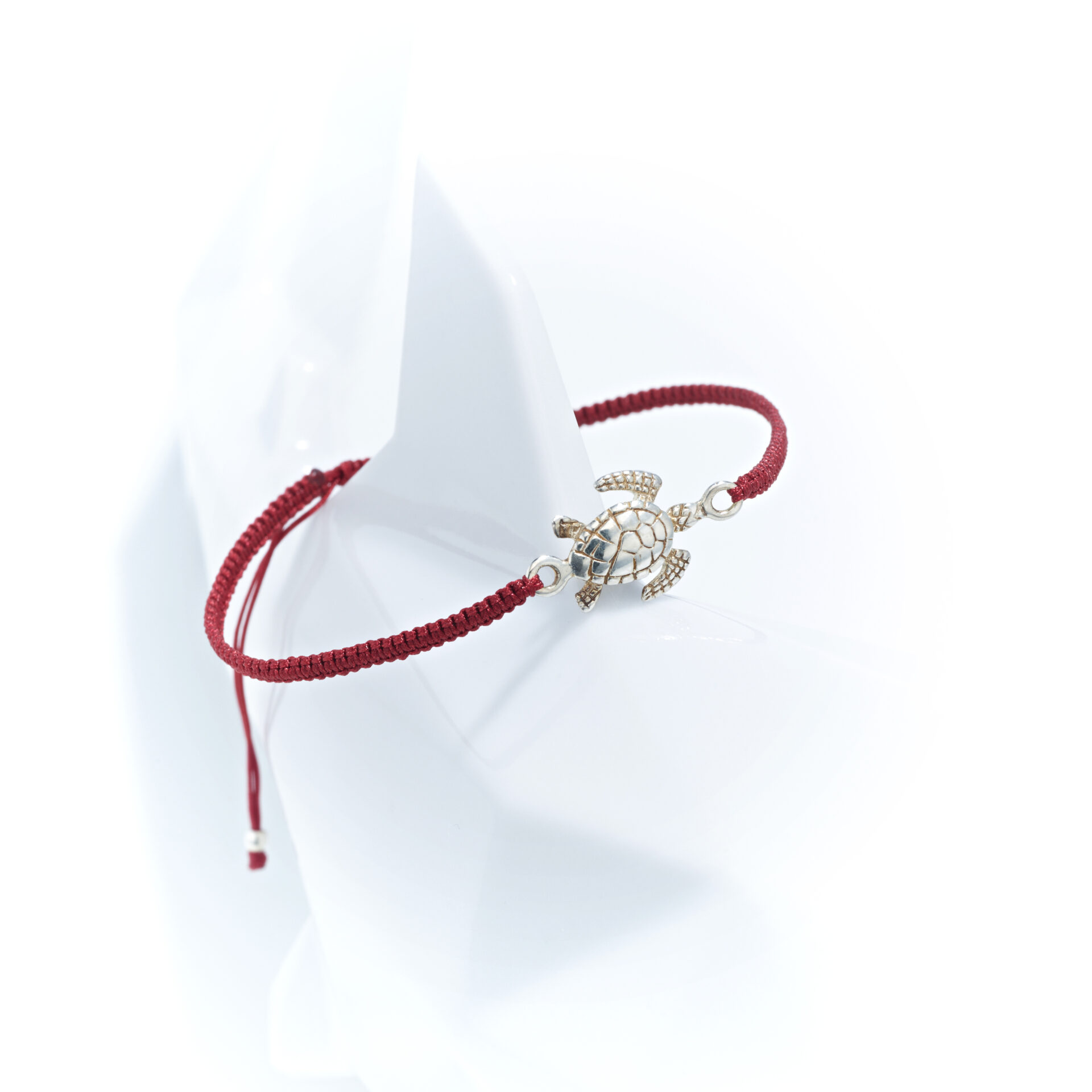 Verstellbares rotes Armband mit Schildkröte aus 925 Silber, ca. 1,4 cm groß – maritimer Begleiter mit Symbolkraft.